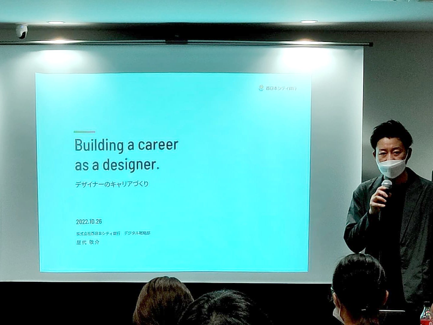 株式会社西日本シティ銀行様からデジタル戦略部のクリエイティブデザインチームリーダーとしてご活躍中の屋代 敬介さんに「デザイナーのキャリアづくり」について登壇いただきました。