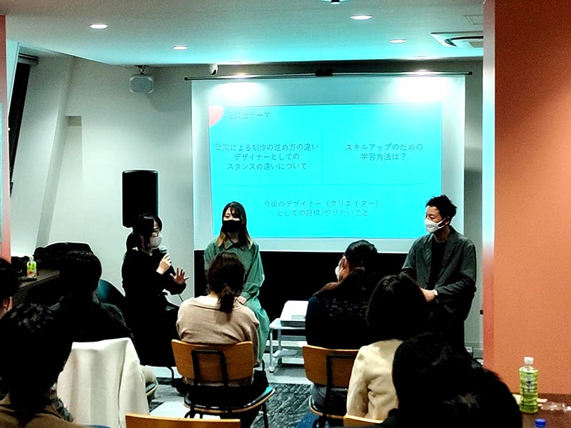 座談会では3名のデザイナーの方それぞれのスキルアップや会社によって異なる制作の進め方への対応方法など、デザイナーならではの取組みについてお話頂きました。