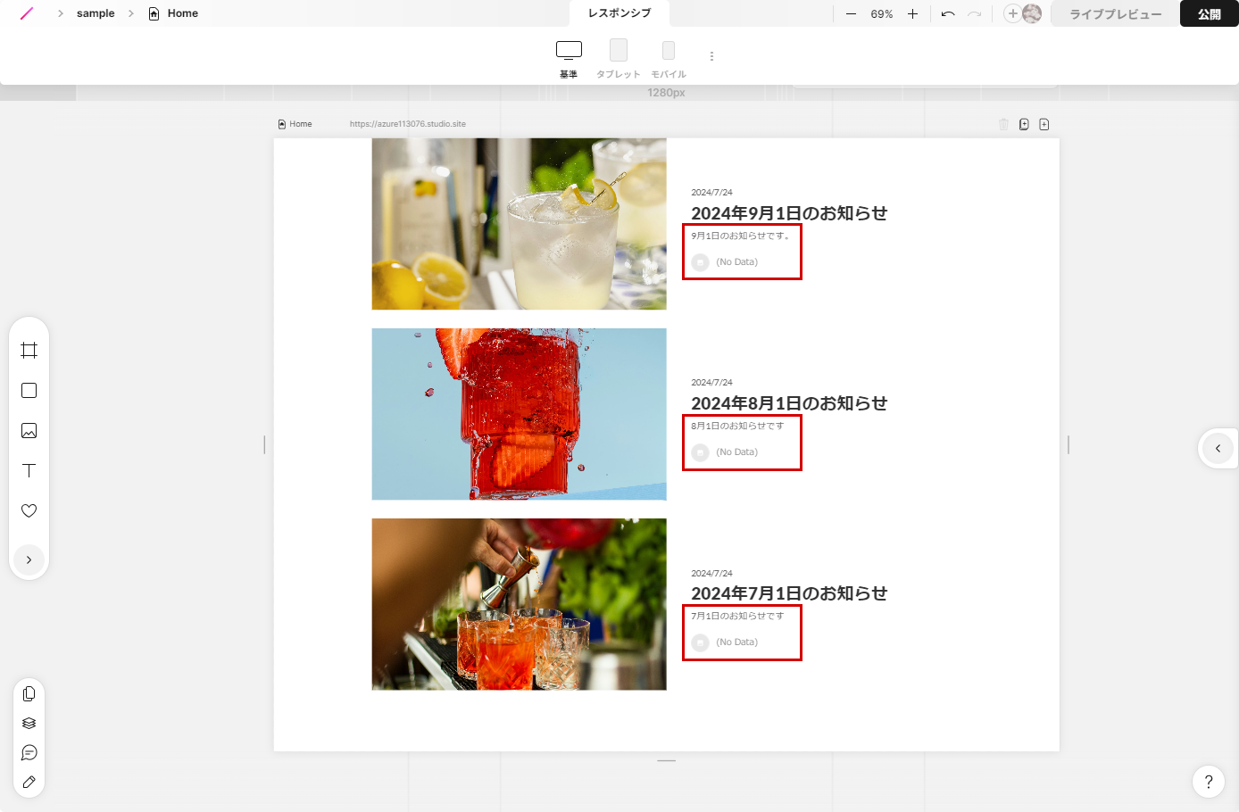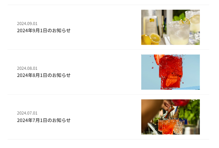 それでは以上を踏まえて、実際に以下のような画像付きお知らせリストの作り方を説明していきます!