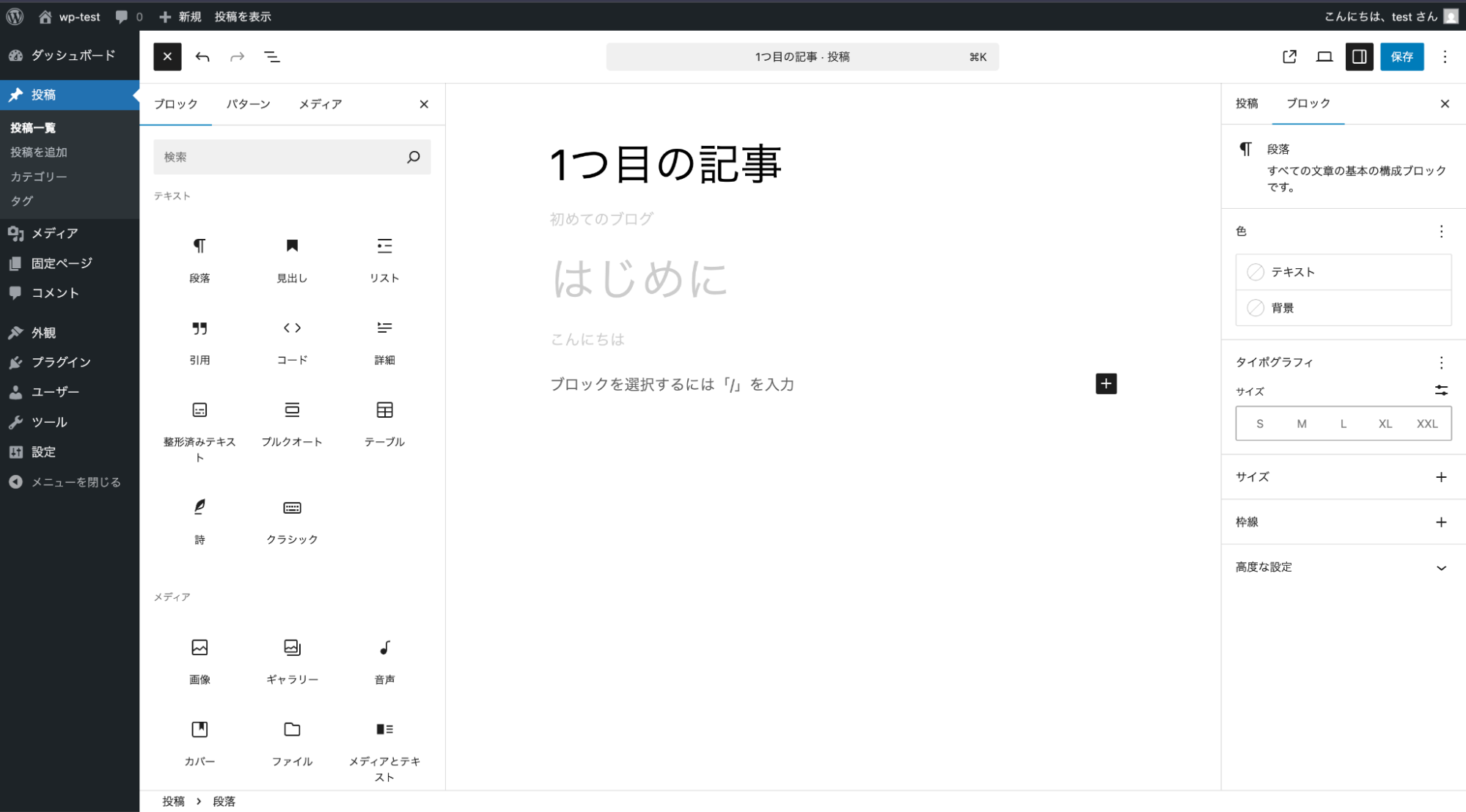 現在はGutenberg(ブロックエディタ)式で、各要素を独立した「ブロック」として表示されます。従来のテキスト入力中心のエディタに慣れていたユーザーや初めて触るユーザーにとっては慣れが必要です。どこに何を入力するのか戸惑いが生じやすい反面、多様なレイアウトを設定することができます。