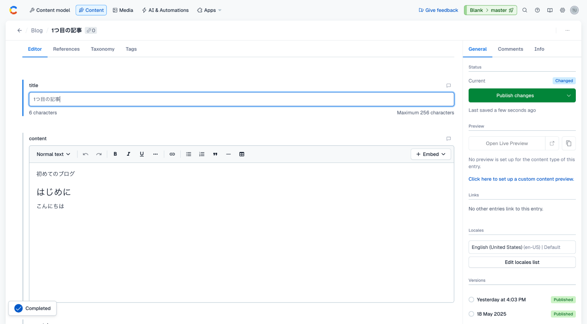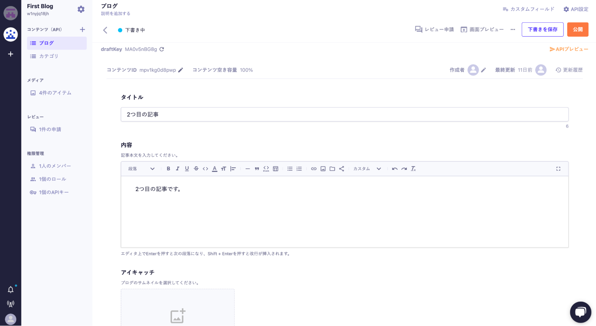 Contentfulも各要素が独立した入力フィールドで、複数の作成者がいても一貫性のあるコンテンツ作成を促進できます。
