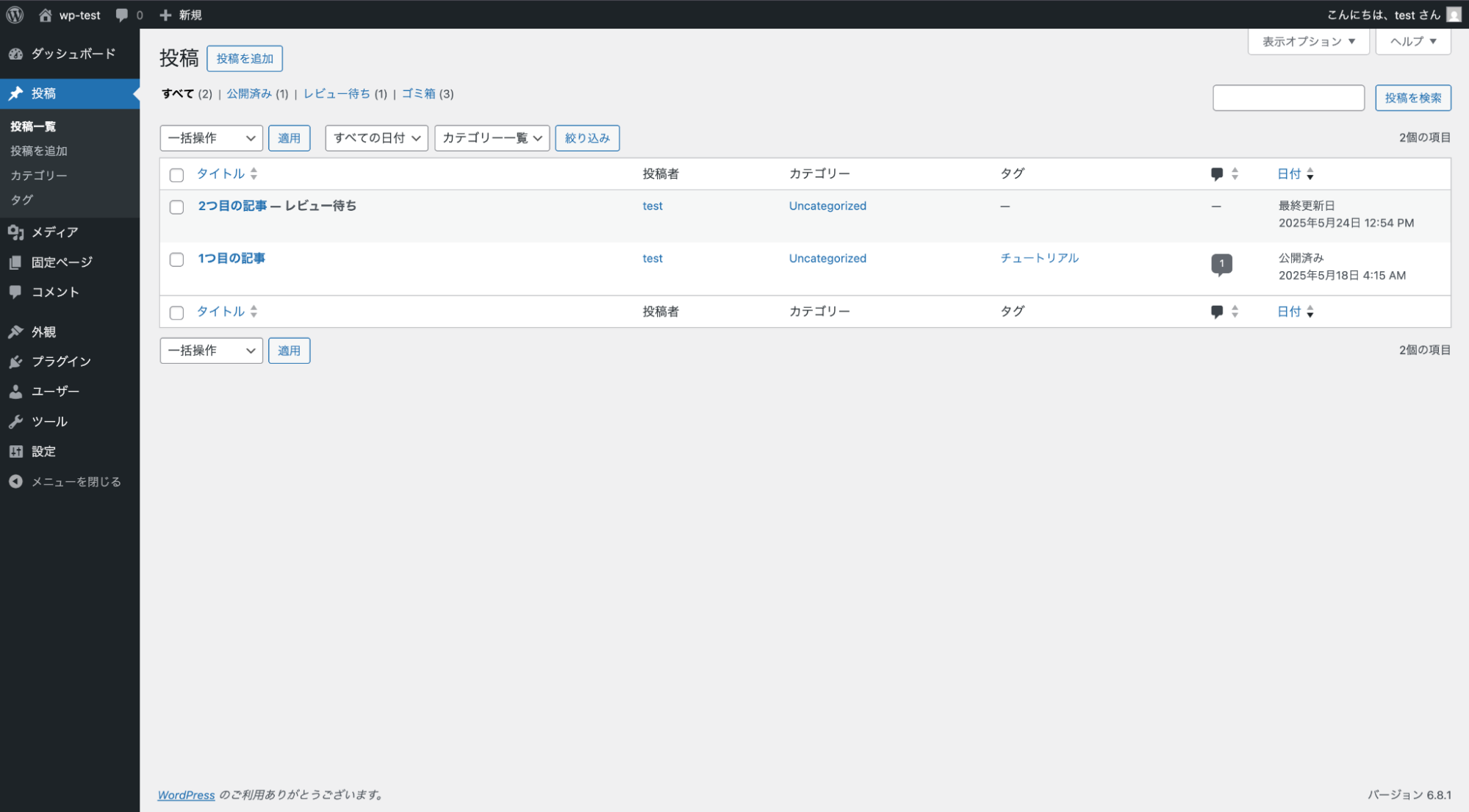 レビュー申請が出された記事は、管理画面のサイドメニューに表示され何件あるかを一目で確認することができます。また、記事一覧にも、記事ごとのステータスが色分けで表示されており、視覚的に状態を認識できます。